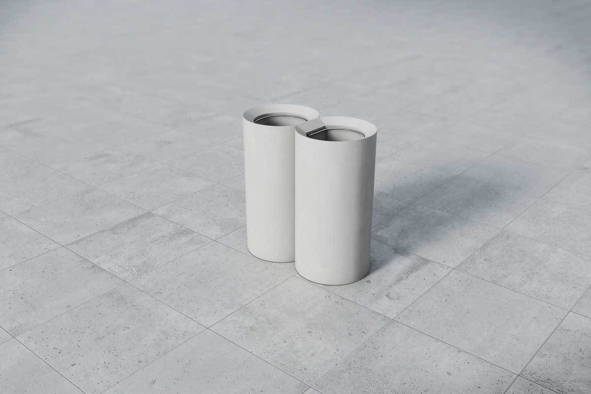 Un méplat sur un côté permet de positionner 2 corbeilles CORNER en vis-à-vis, dans le but de créer un tri