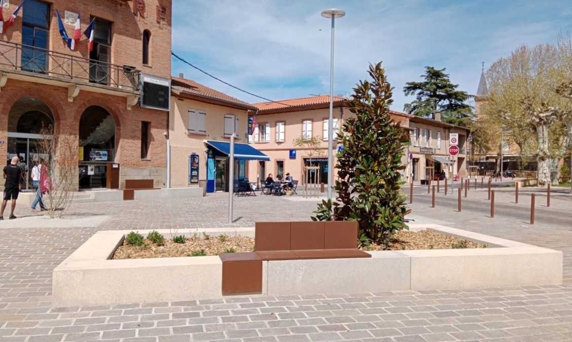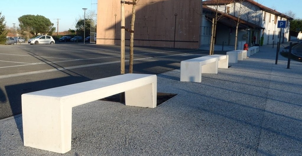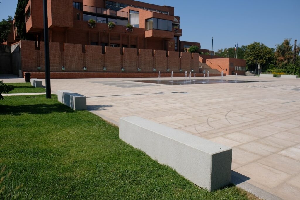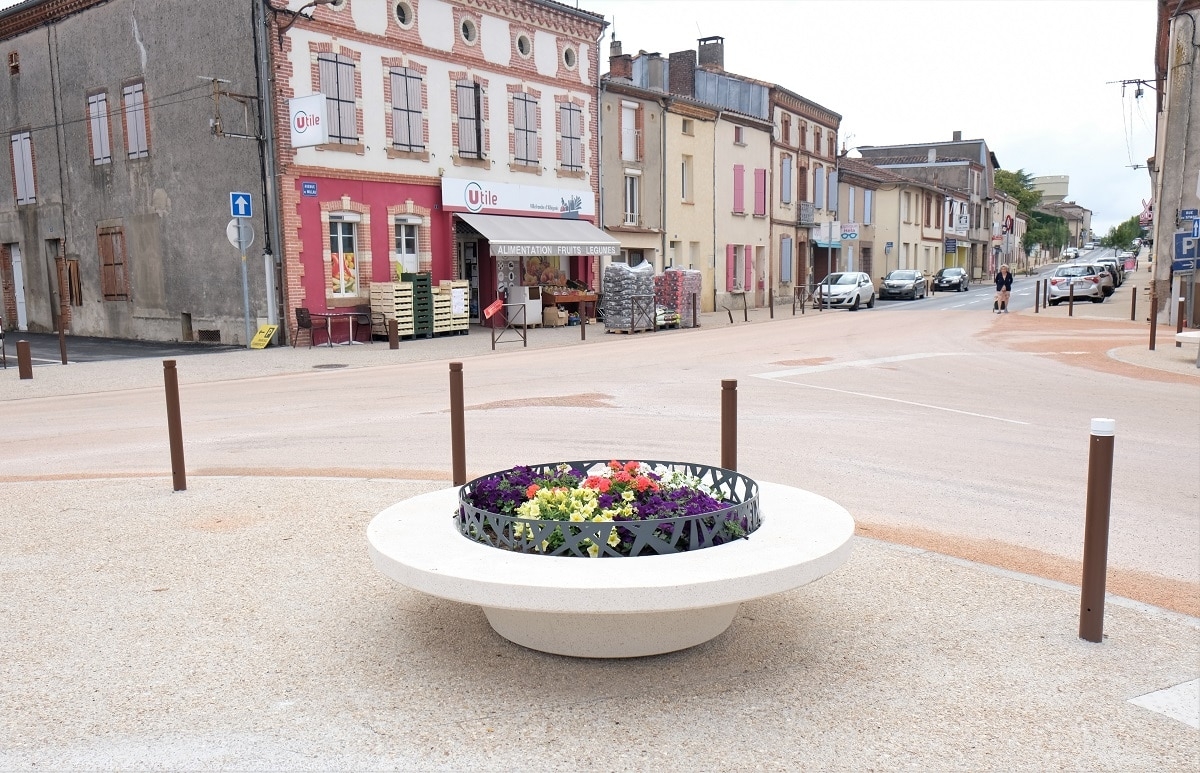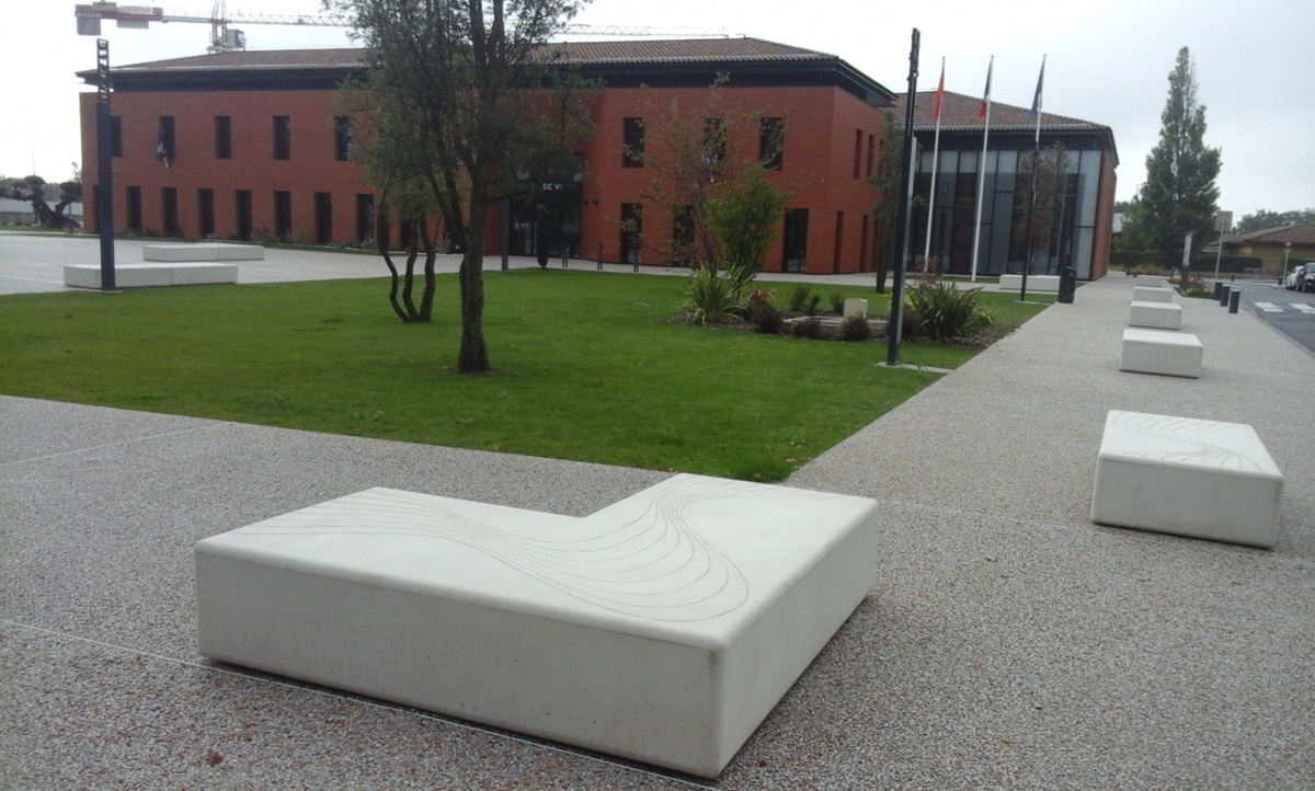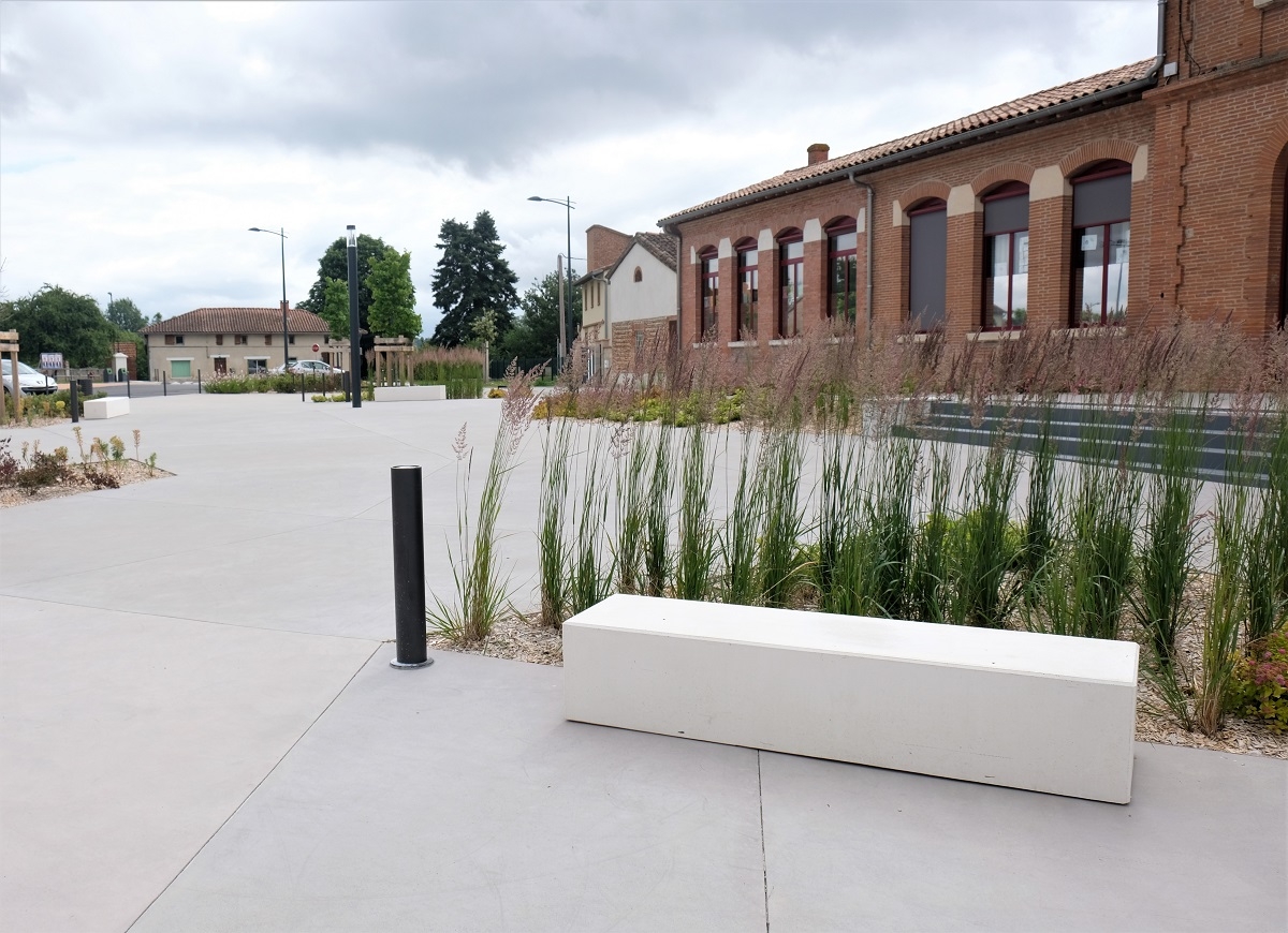 Mr Desclaux, maire de Mondonville, et Mr Herret, chef de projet à Toulouse Métropole, voulaient habiller la nouvelle place avec du mobilier épuré, pouvant être déplacé et servant de protection et d'anti-stationnement. Ils ont choisi le bord arrondi de la gamme ALERA.