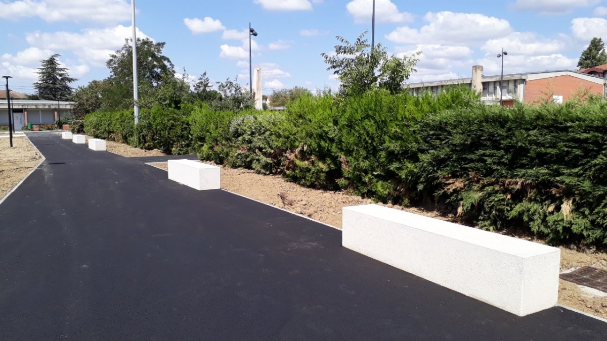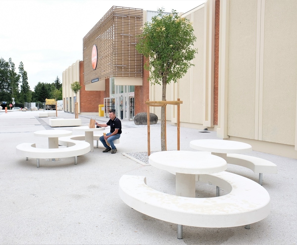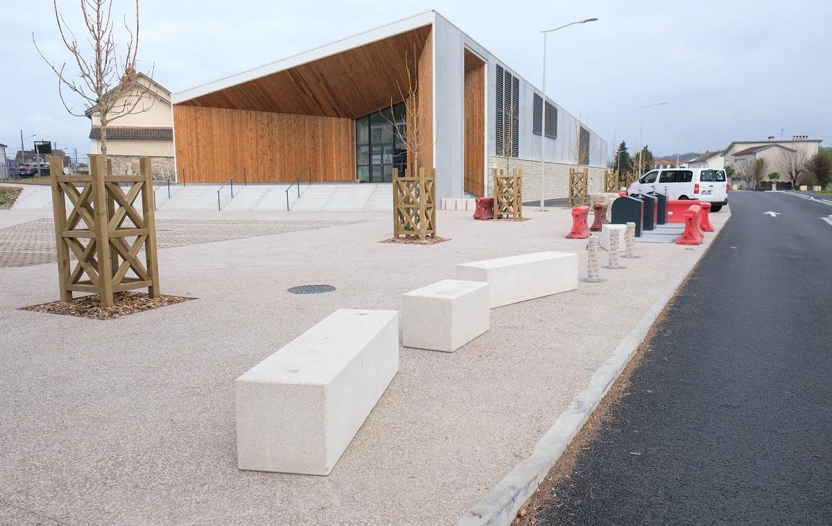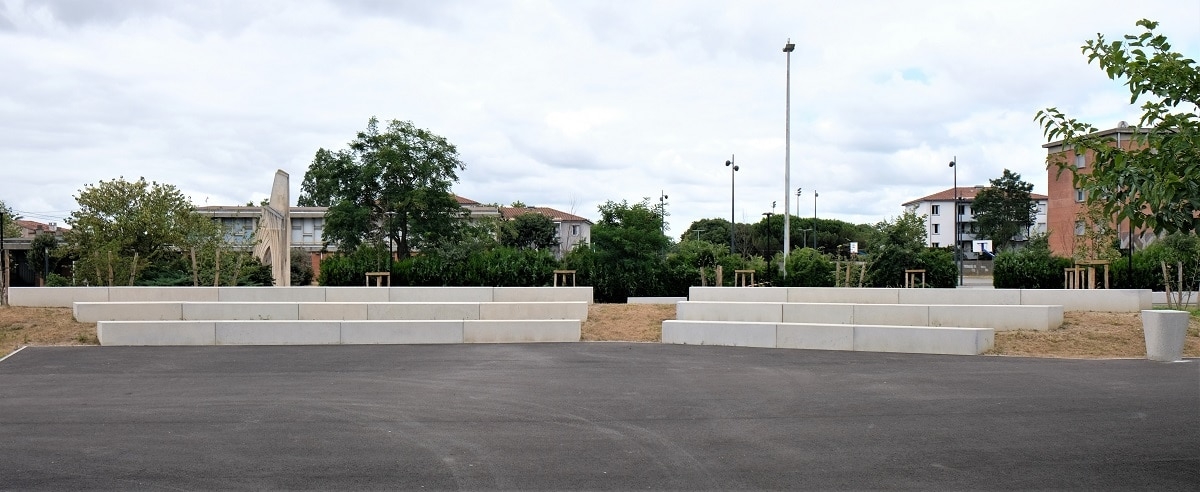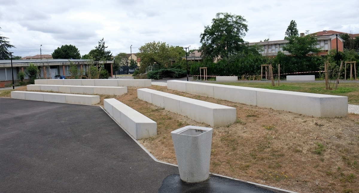 Mr Desclaux, maire de Mondonville, et Mr Herret, chef de projet à Toulouse Métropole, voulaient habiller la nouvelle place avec du mobilier épuré, pouvant être déplacé et servant de protection et d'anti-stationnement. Ils ont choisi le bord arrondi de la gamme ALERA.