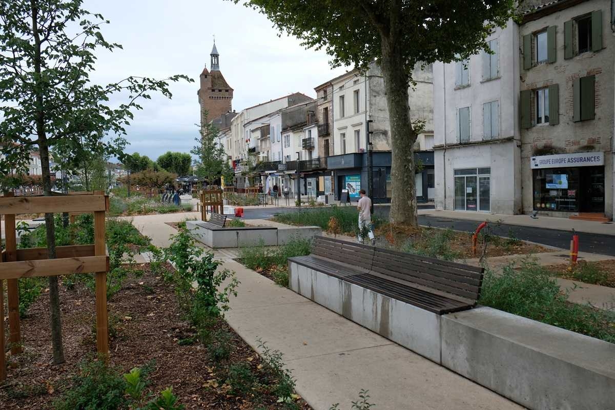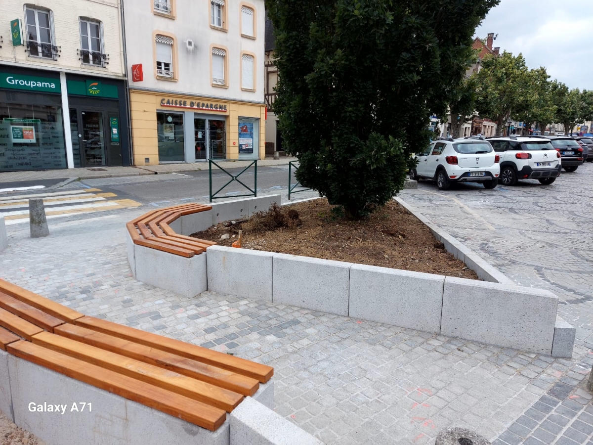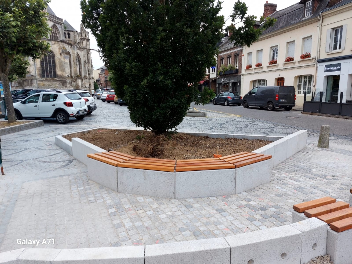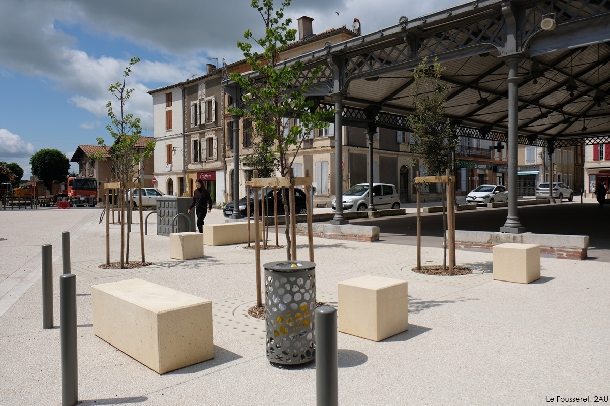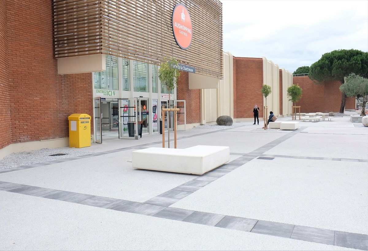 Mr Desclaux, maire de Mondonville, et Mr Herret, chef de projet à Toulouse Métropole, voulaient habiller la nouvelle place avec du mobilier épuré, pouvant être déplacé et servant de protection et d'anti-stationnement. Ils ont choisi le bord arrondi de la gamme ALERA.