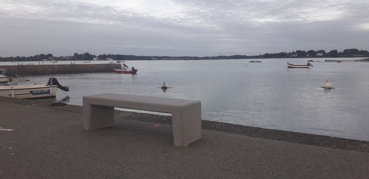 Finition : béton gris, côté lisse et assise talochée fin