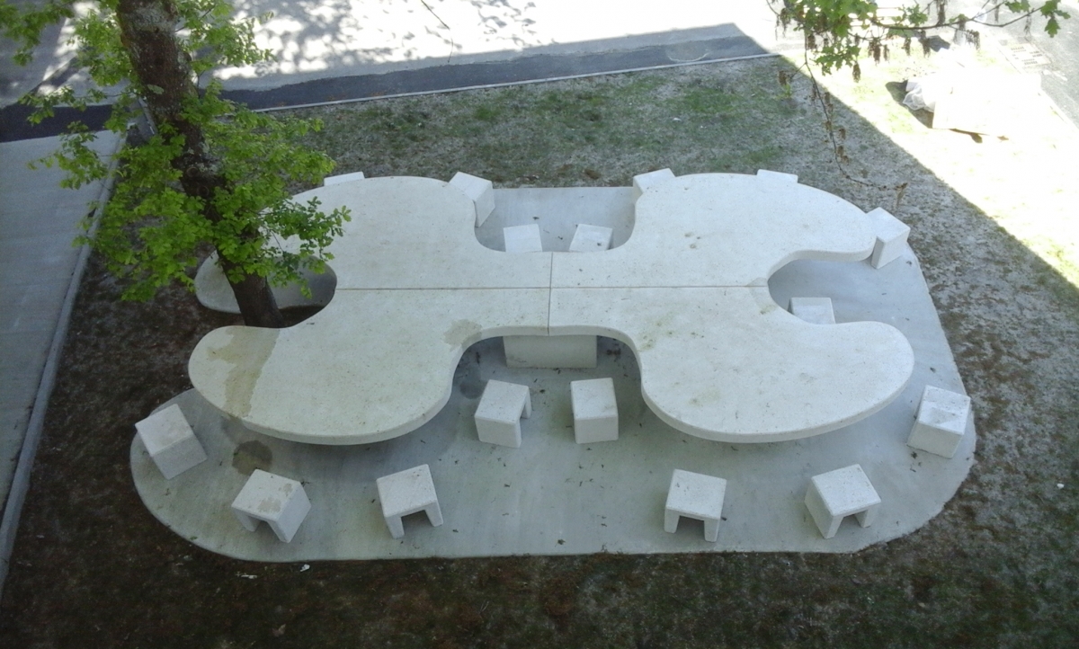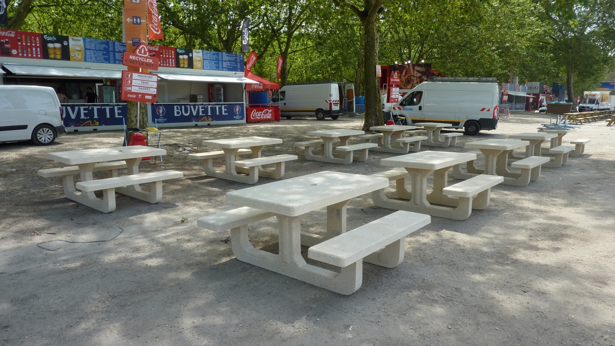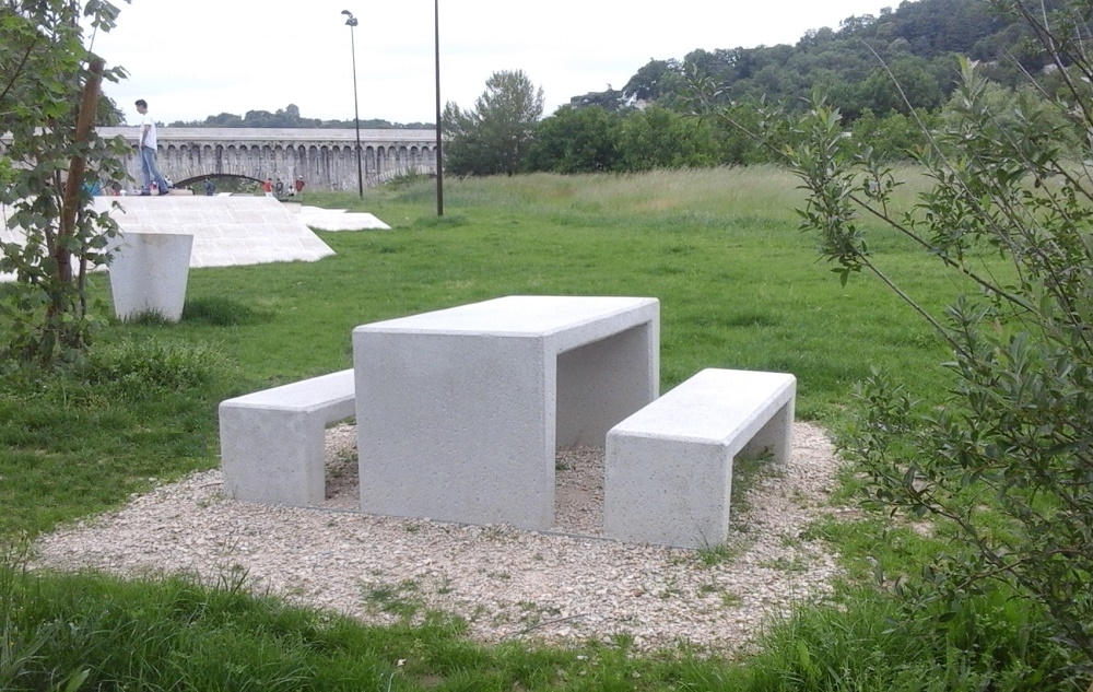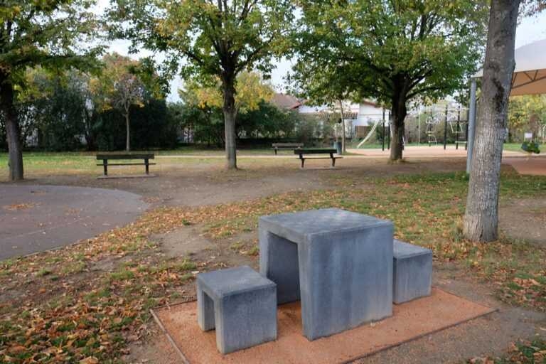 Les Services Techniques et Espaces Vert de Bègles souhaitait un mobilier économique, avec peu d'entretien, s'inscrivant visuellement dans le parc et résistant aux... barbecues.