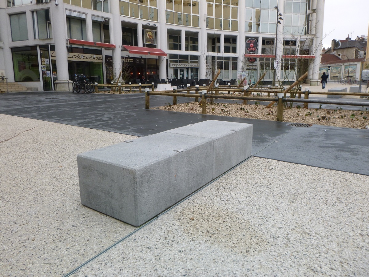 Mobilier : bordure, bloc marche, mur de soutènement, dalle et bloc banquette