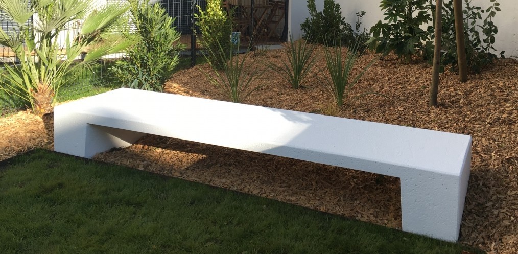 L'architecte du projet voulait des blocs banquettes HARLEM très épurés avec la même finition que la structure du bâtiment. Nous les avons donc fabriqué avec un chanfrein de rayon 5 mm et un béton gris lisse auto-plaçant.