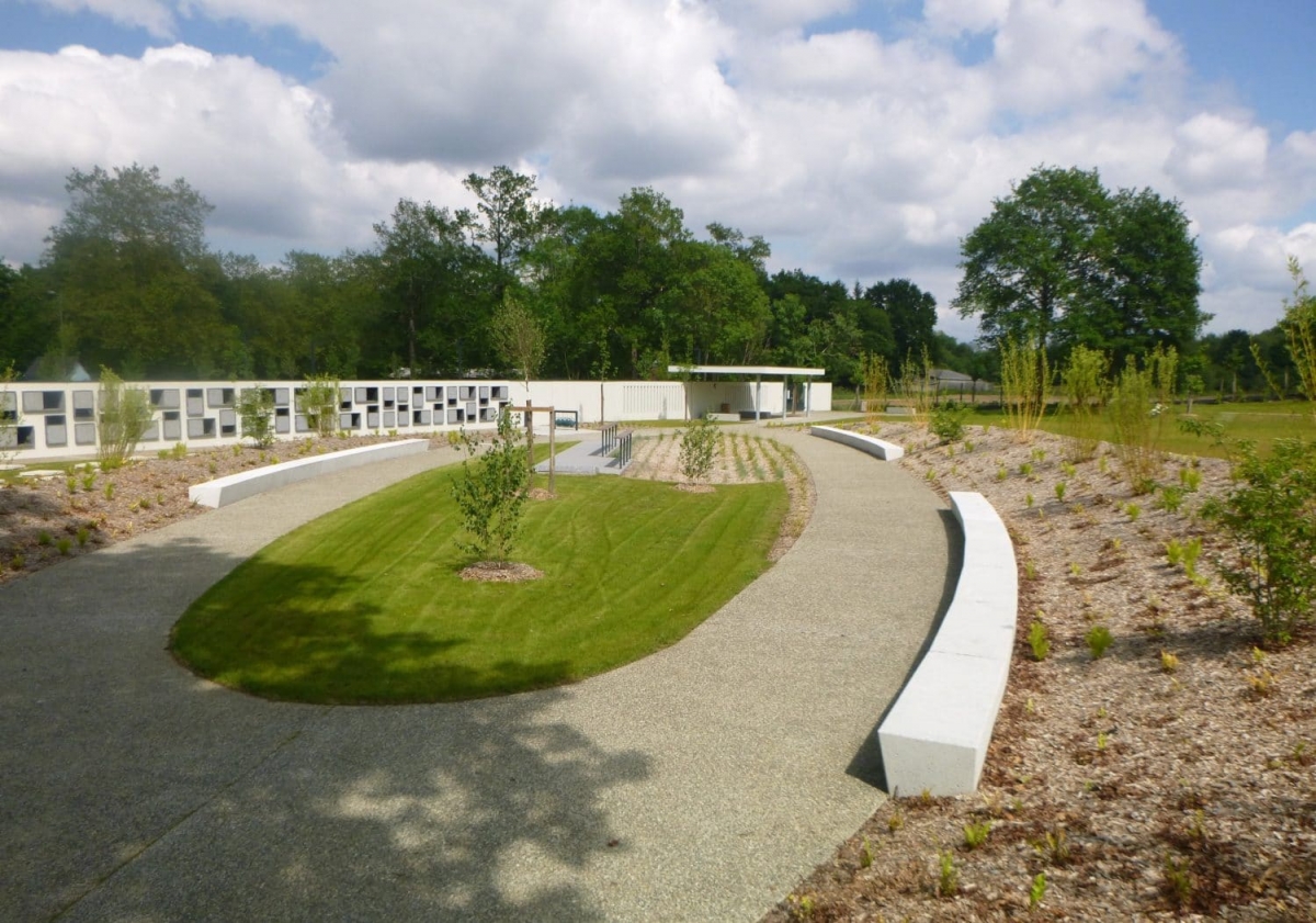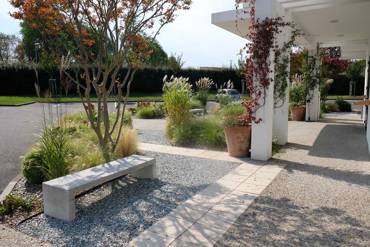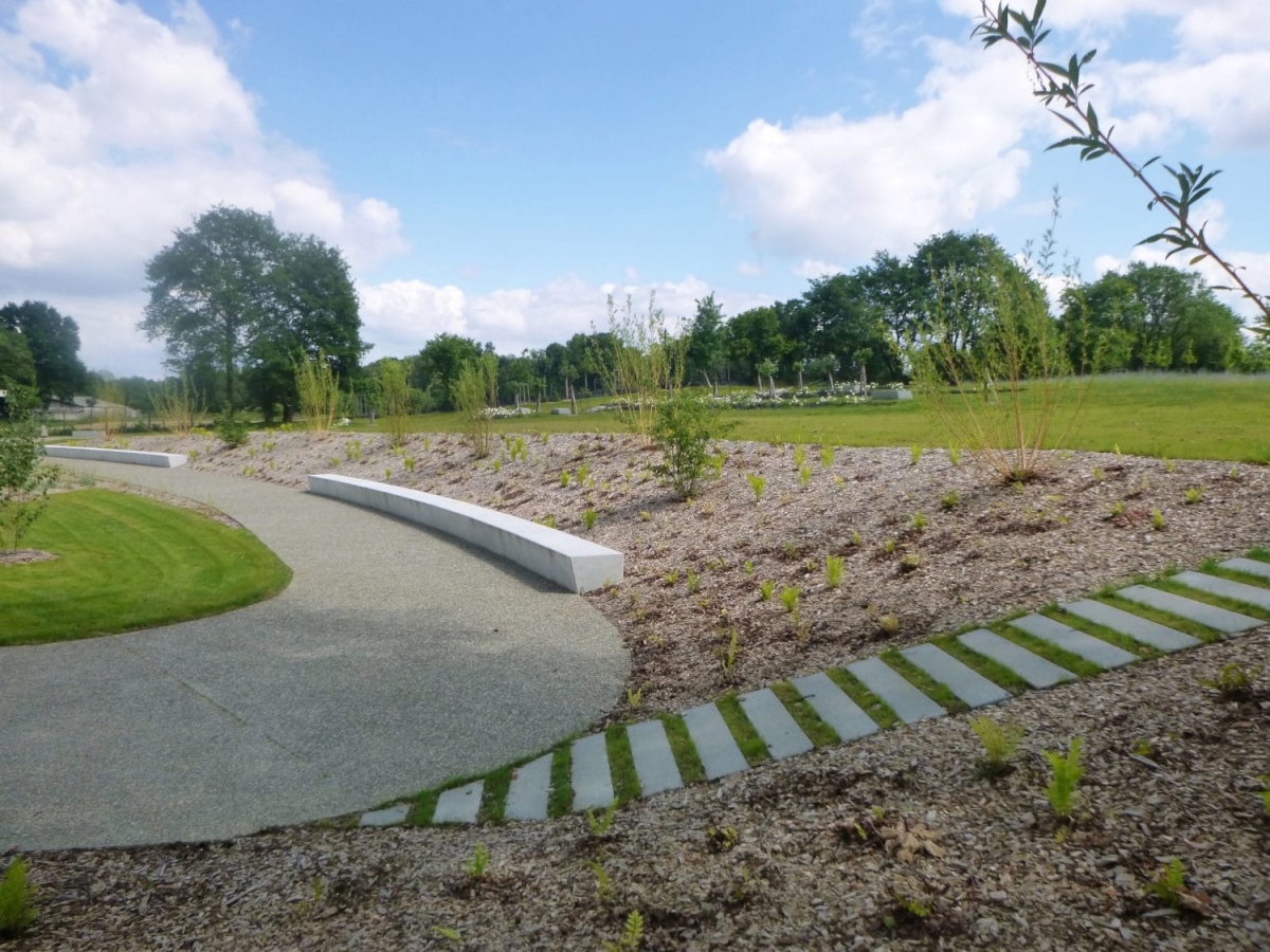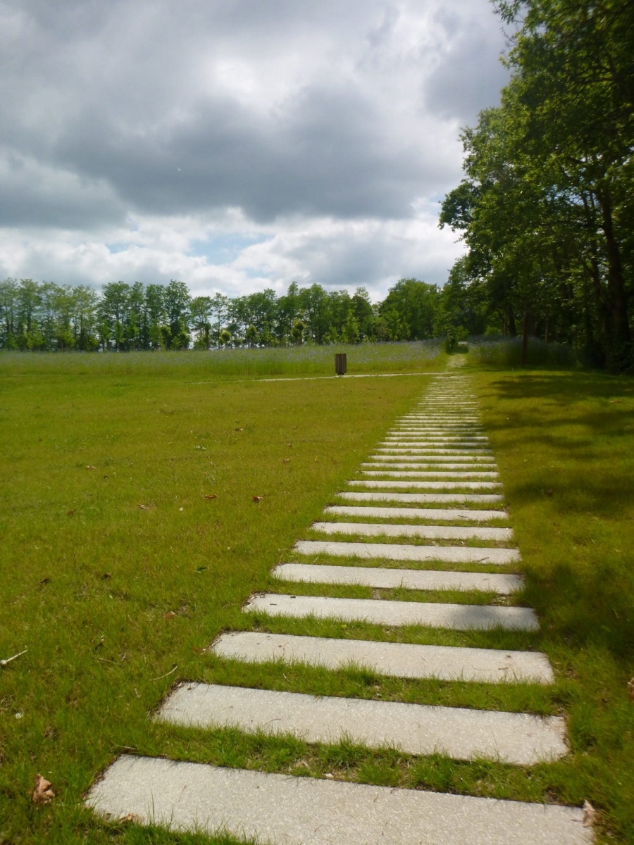 Monsieur Gastel, paysagiste DPLG, souhaitait des cheminements rectilignes en dalles allongées symbolisant un chemin gravé calcaire